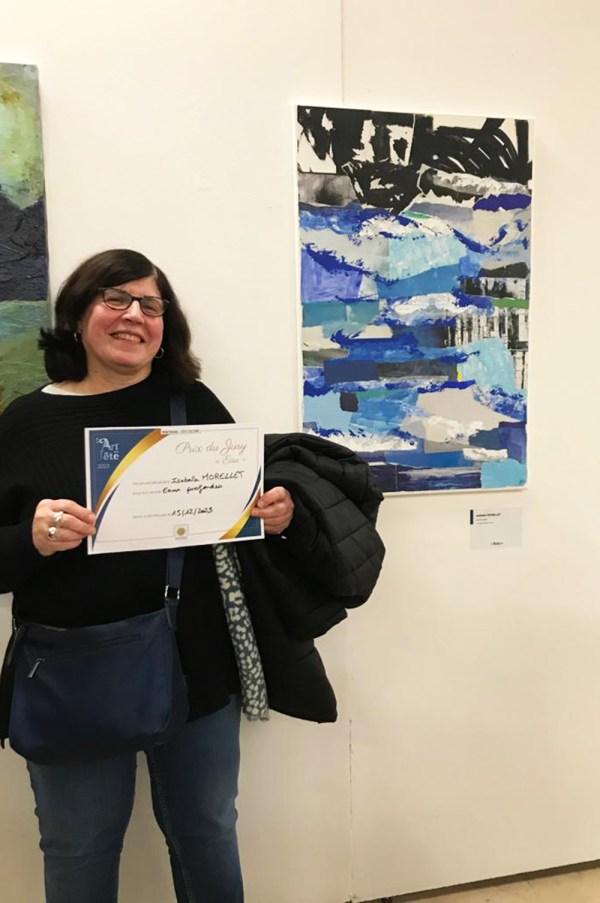 J'ai reçu le premier prix du jury "Eau" pour mon collage sur toile "Eaux profondes"