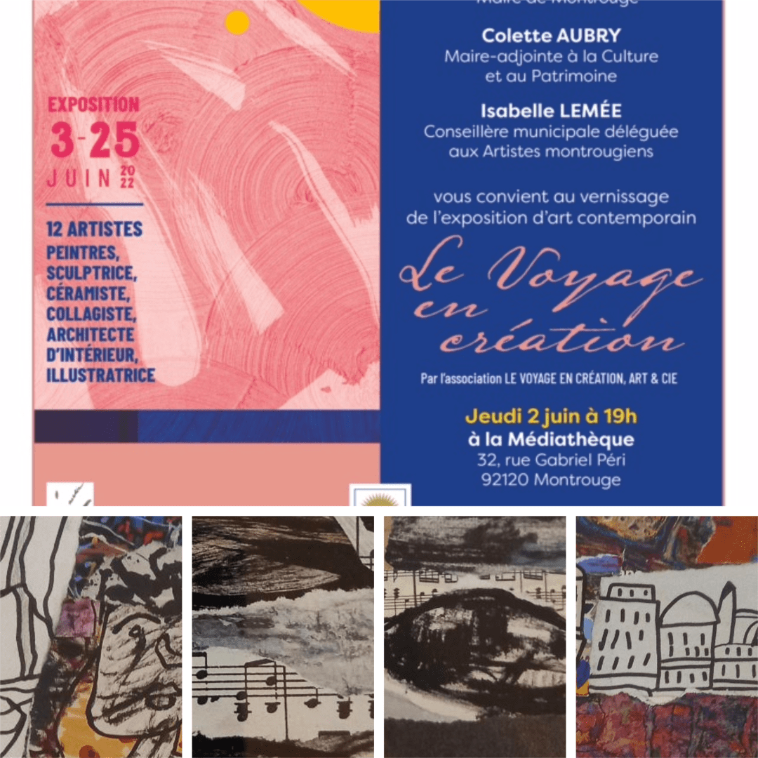 J’expose à la médiathèque de Montrouge avec l’association « Le Voyage en création, Art et Cie » du 3 au 25 juin 2022 Partager : Cliquer pour partager sur X(ouvre dans une nouvelle fenêtre) X Cliquez pour partager sur Facebook(ouvre dans une nouvelle fenêtre) Facebook J’aime chargement… Similaire Laisser un commentaire Annuler la réponse. Δ