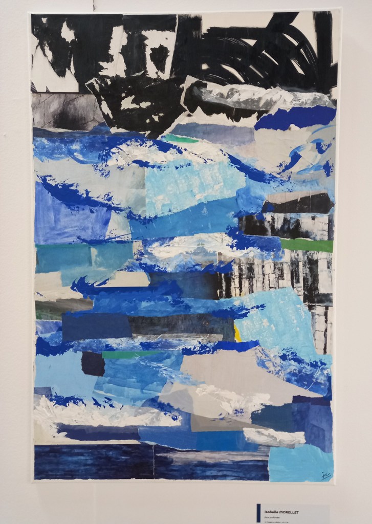 J’ai reçu le premier prix du jury « Eau » pour mon collage sur toile « Eaux profondes »