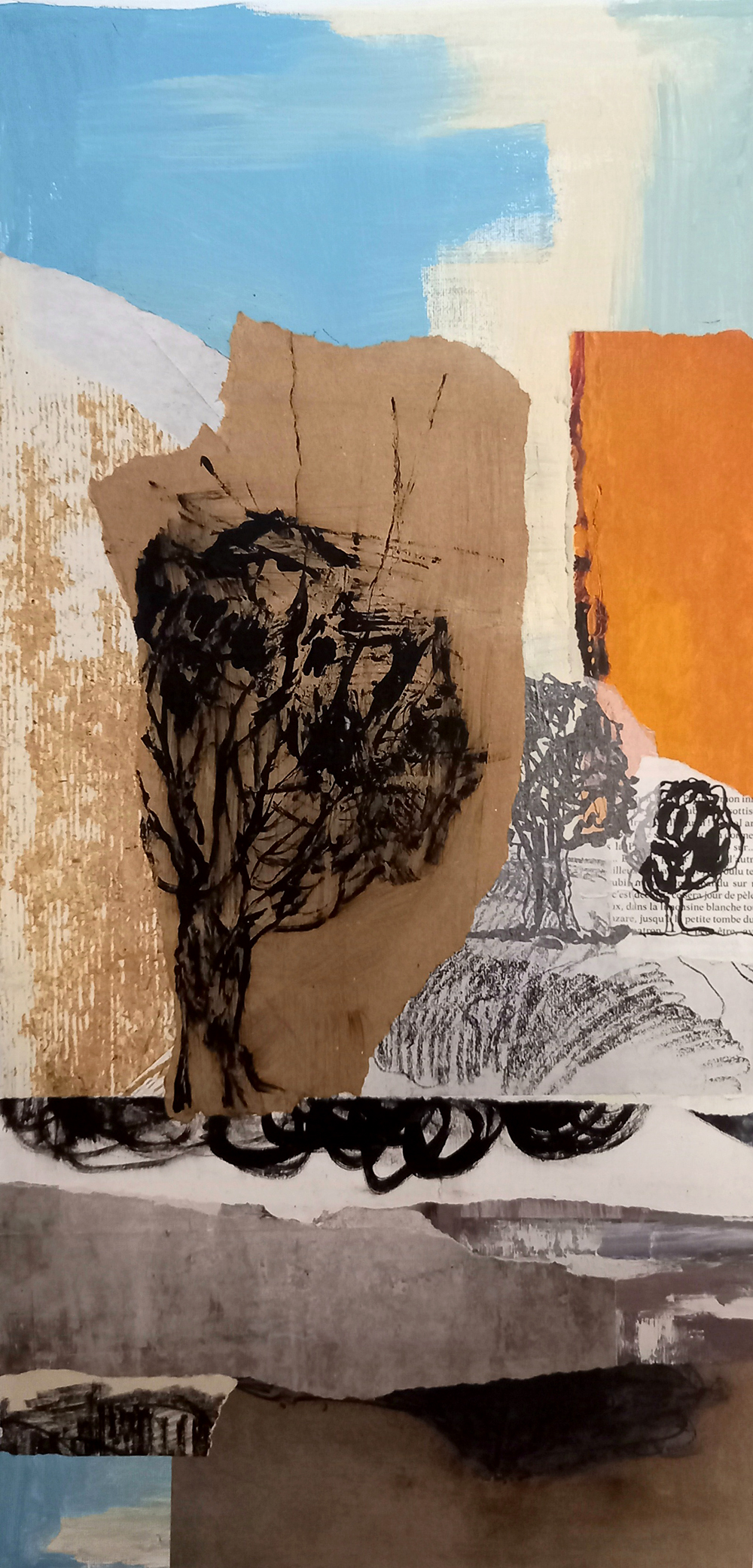 Collages avec papiers, matières, peinture et encre de Chine – Dessins – Photos