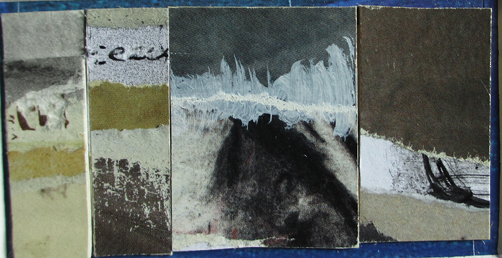 De nouveaux travaux, en ce début d’année. Des petits formats, des compositions réalisées avec des papiers, de l’encre de Chine et des touches de peinture.