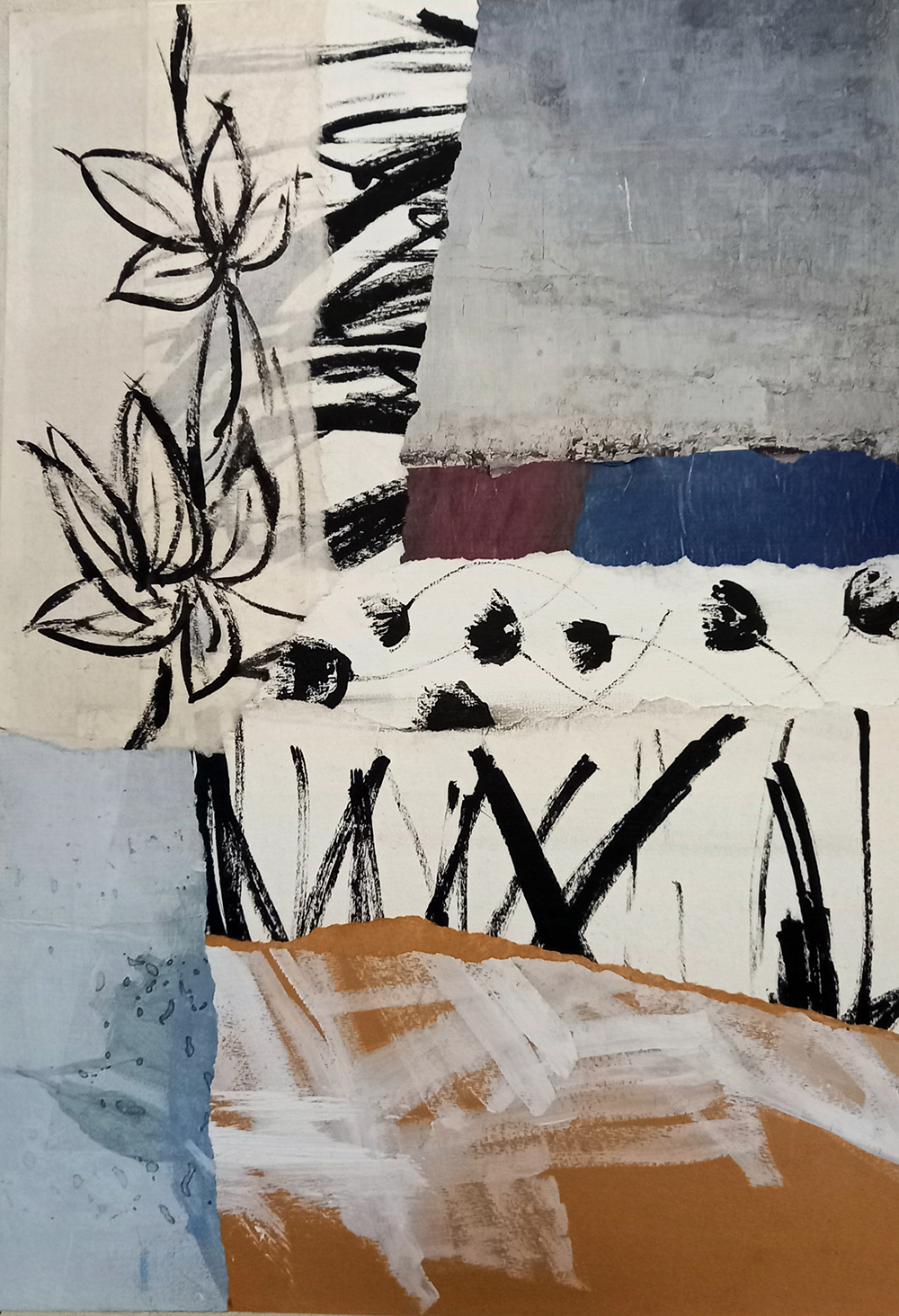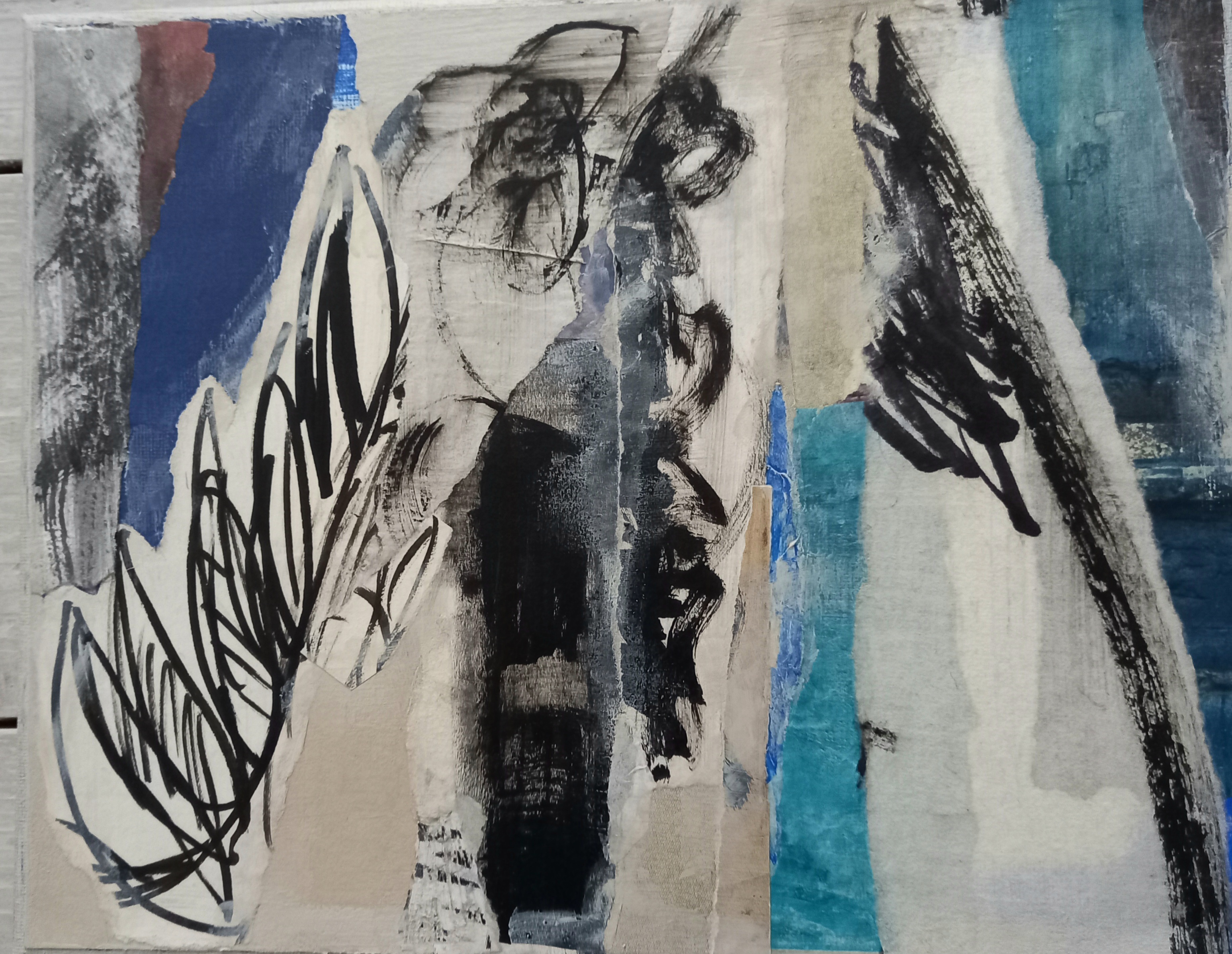 Collages avec papiers, matières, peinture et encre de Chine – Dessins – Photos