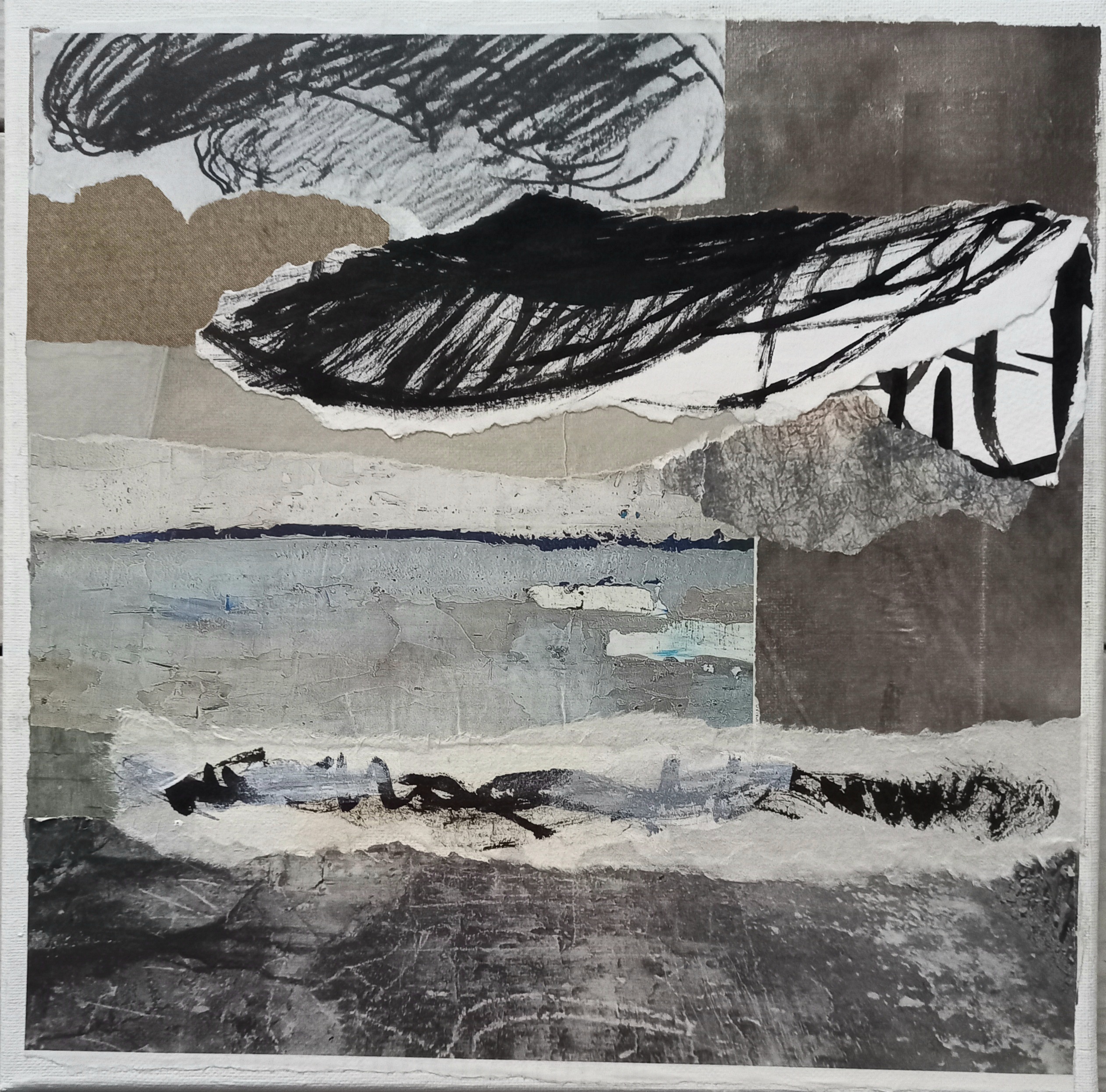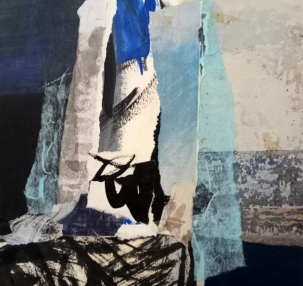 Je compose sur toile depuis quelques temps. L’appréciation de l’ensemble du collage est plus directe, réduisant la distance entre l’œil et la matière; il se dégage une sensation plus douce et plus agréable.