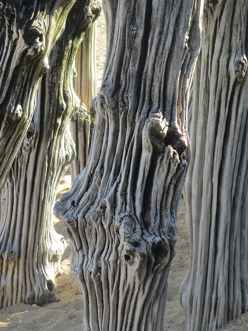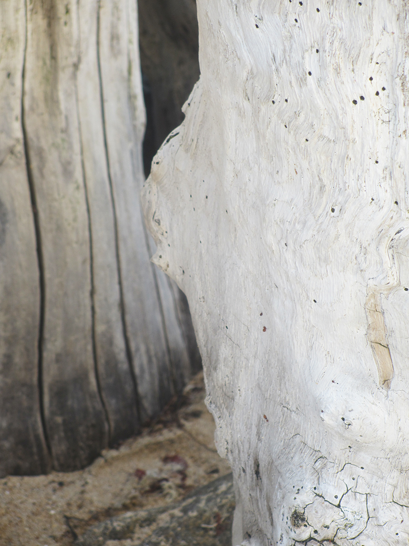 Les brise-lames sculptés, jour et nuit, par la montée de l’eau