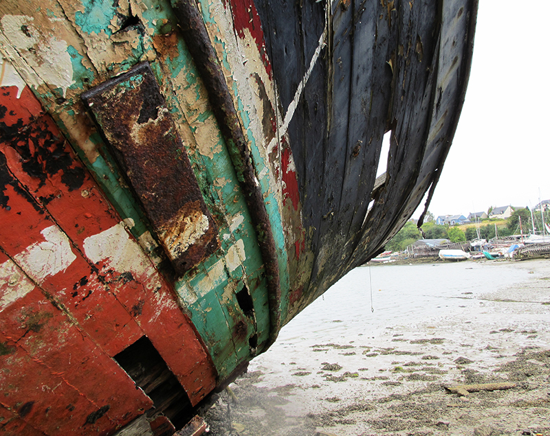 Cimetière de bateaux : Coques abandonnées, mémoires marines, peintures écaillées, délavées
